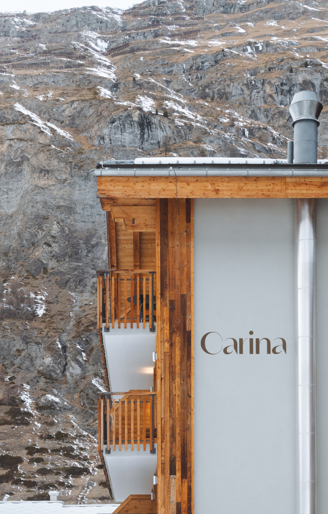Built in 1958 as a simple guesthouse, Carina became over the decades a quiet witness of time. In 2018, in the middle of a snowstorm, a new chapter began: three friends, 22 architects, one idea. Today, Carina is a place that offers peace without standing still. With a clear language of wood, stone, and light.