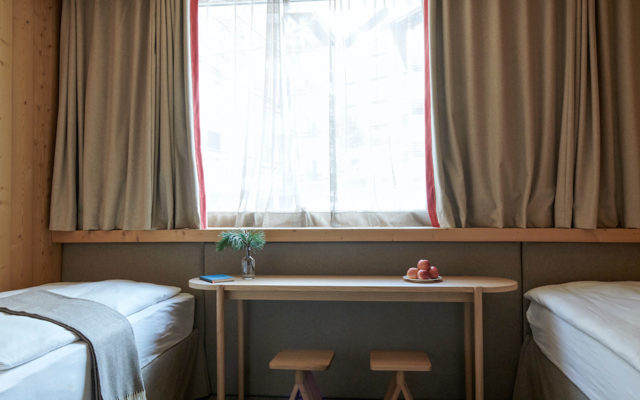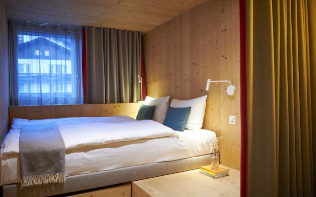 The terrace opens to the Matterhorn, making the mountain a constant companion.