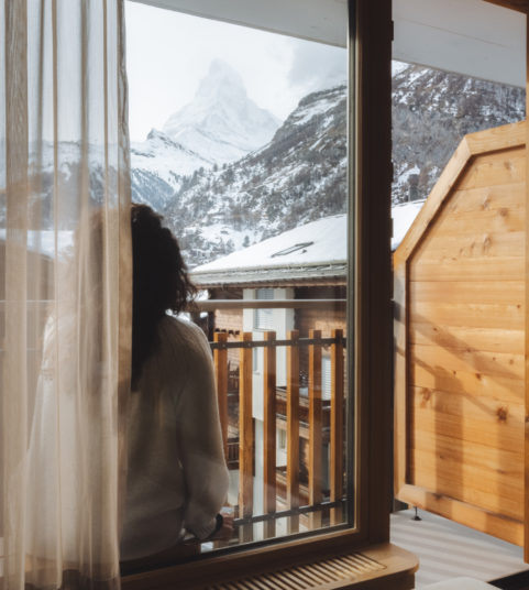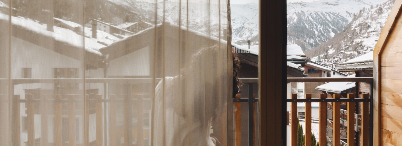 Viele unserer Zimmer im Carina sind mit einem Erker ausgestattet. Ein Fensterplatz mit Tiefe. Du sitzt dort, siehst die Berge oder die Dächer von Zermatt, und plötzlich wird es still. Diese Fenster sind keine Dekoration. Sie sind Einladung. Zum Innehalten, zum Lesen, zum Denken. Ein Lieblingsplatz für viele. Vielleicht auch für dich.